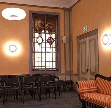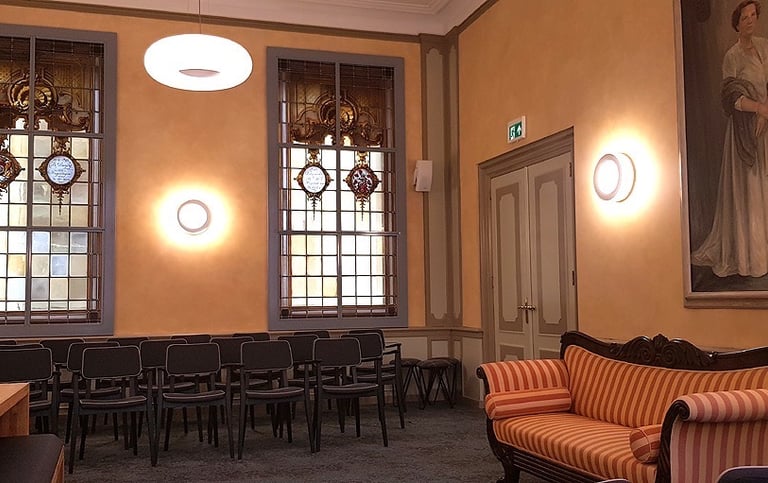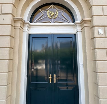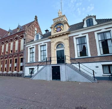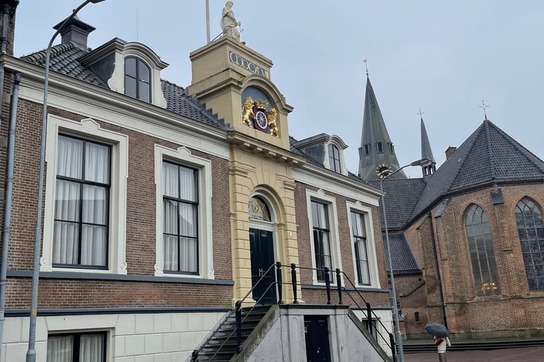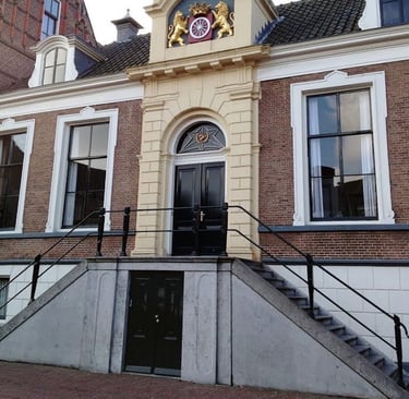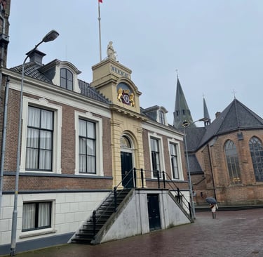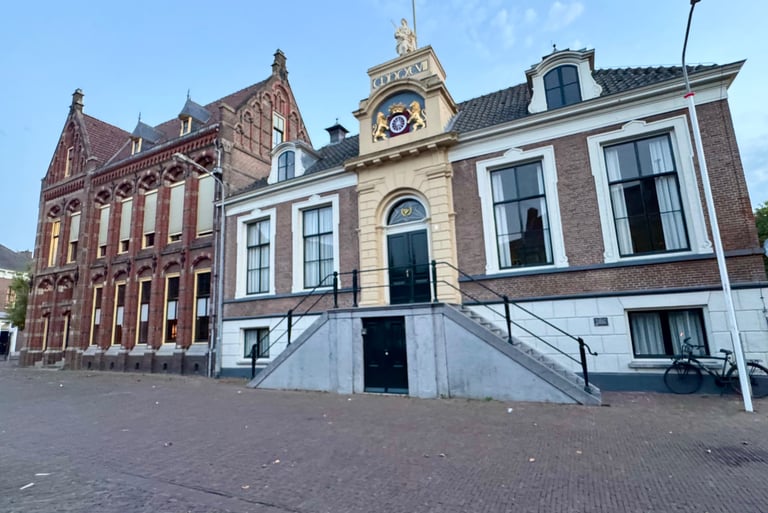 Gemeente Wageningen - Enter at the double stairway, under the large city crest, around the left side of the municipality building.